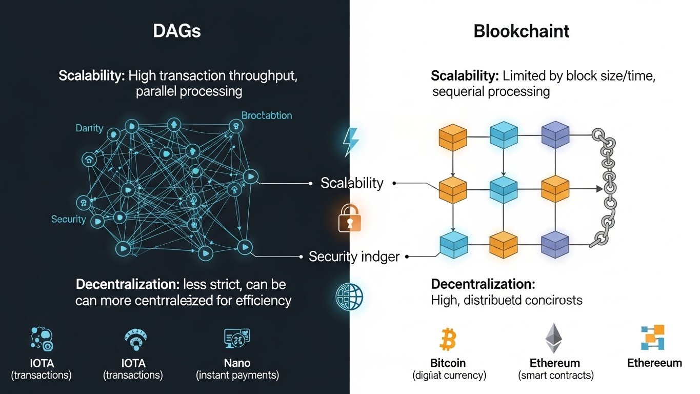 DAG security models differ significantly. Since there are no blocks or miners, security often depends on transaction validation patterns and network activity. Some DAG systems introduce additional mechanisms to prevent attacks during early stages or periods of low activity. While DAG can be secure, its models are often more complex and less battle-tested than traditional blockchain security. This complexity requires careful design and ongoing research.